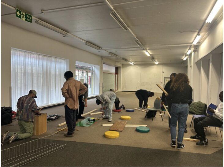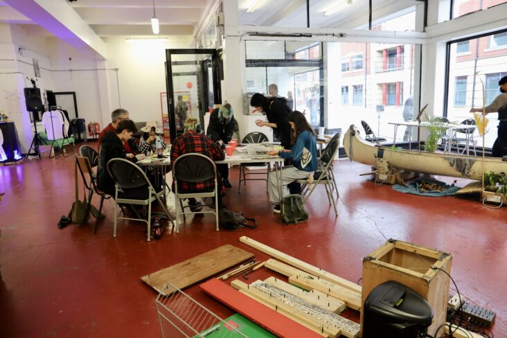 Friday morning saw the doors open to the public, and it was great to welcome visitors and talk to them about what we were doing. The Xeno-space really began to take shape as the workshops and events began. With Rob Shuttleworth, participants created an instrument from found materials – an “unprecious instrument” – which was then transported to the space and played there by Rob that evening. The performance was followed by readings from writers featured in the Small Publishers book shop, an important strand of DEPOT dedicated to independent publishing. Marcel’s images fluttered to the music, and the words made you look at the art differently; the space of dialogue became a polyphony.