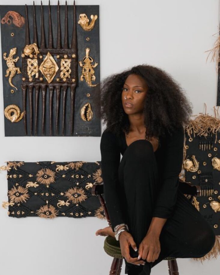 Materiality plays a crucial role in this reclamation. I work with traditional elements such as raffia, gold leaf, wood, iron, and jewellery forms, embedding symbolism and coded language within each piece. The title Akinkra No draws from the visual and philosophical language of Adinkra symbols, reflecting a system of communication rooted in heritage, identity, and meaning.